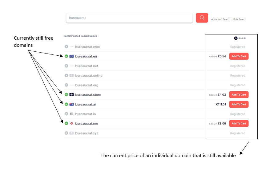 For further explanation and better understanding, consider the (fictional) example of an Accountancy Service called Bureaucrat, which is newly emerging on the market. In case they want to have a website, they have to register a domain.